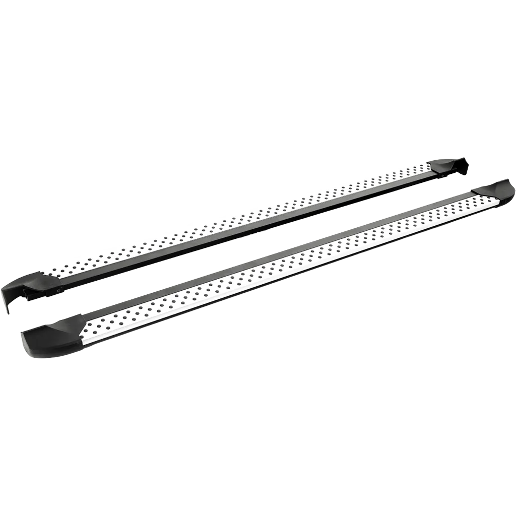 The Can Long Wheel Base Era Running Boards in Silver are designed as a stylish side-step solution for VW T5 and T6 vehicles. Primarily intended as a styling accessory, the running boards feature a sleek, narrow tread that enhances the vehicles appearance while maintaining a functional stepping surface. Constructed from lightweight, durable aluminium, these boards combine strength with an elegant, low-profile design.