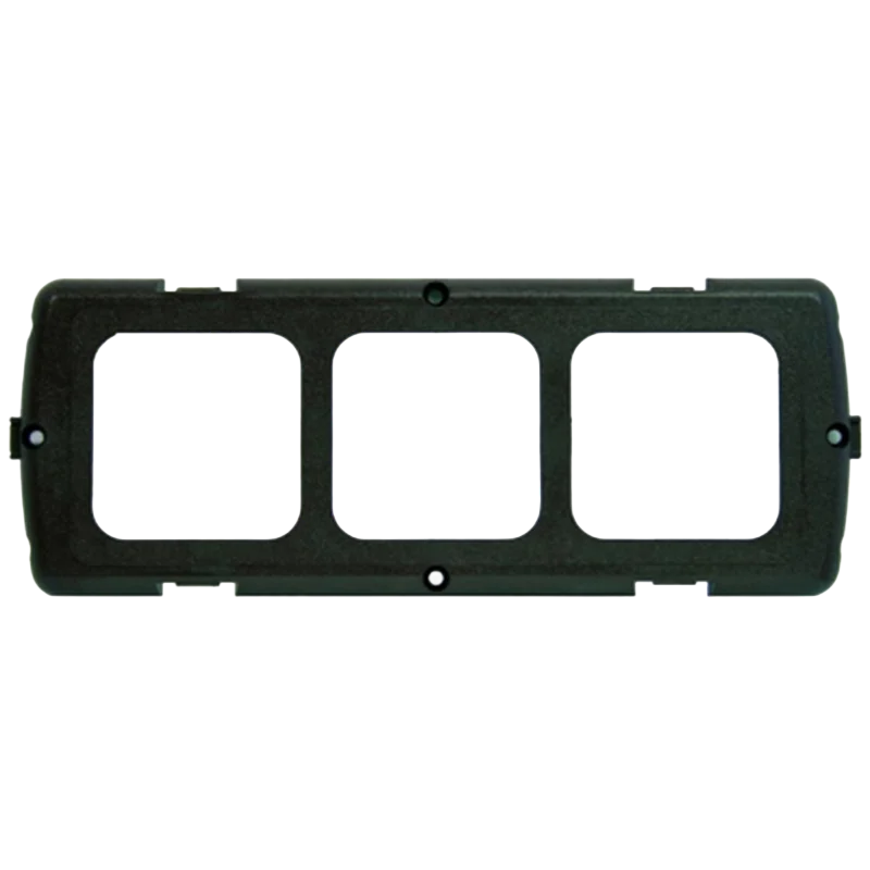 Support frame for use when fitting three cbe sockets. the frame clips around the sockets and is screwed in to place on the wall. a decorative 3-way outer frame can then be clipped over the top of the support frame.