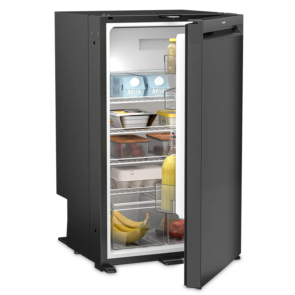 Fresh design, superior energy efficiency: this smart compressor-cooled refrigerator provides 90 l of cool storage. Well-thought-out dimensions make it an easy swap for the Dometic 5- or 8-series absorption refrigerators. The elegant frameless door opens to a versatile interior. You can easily remove the freezer compartment to use the full cabinet capacity for refrigeration or deep-freezing.