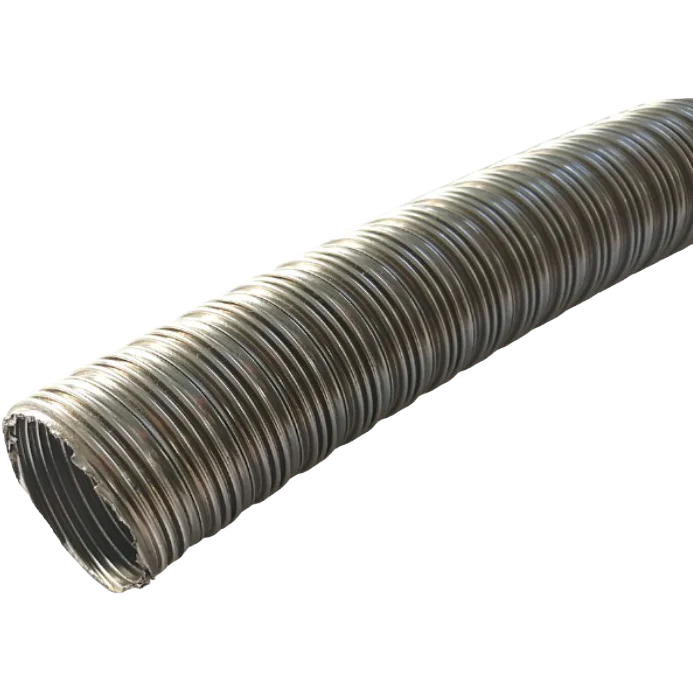 stainless steel exhaust. if used internally (marine use) it must be lagged and ducted as the exhaust becomes very hot when heater is running