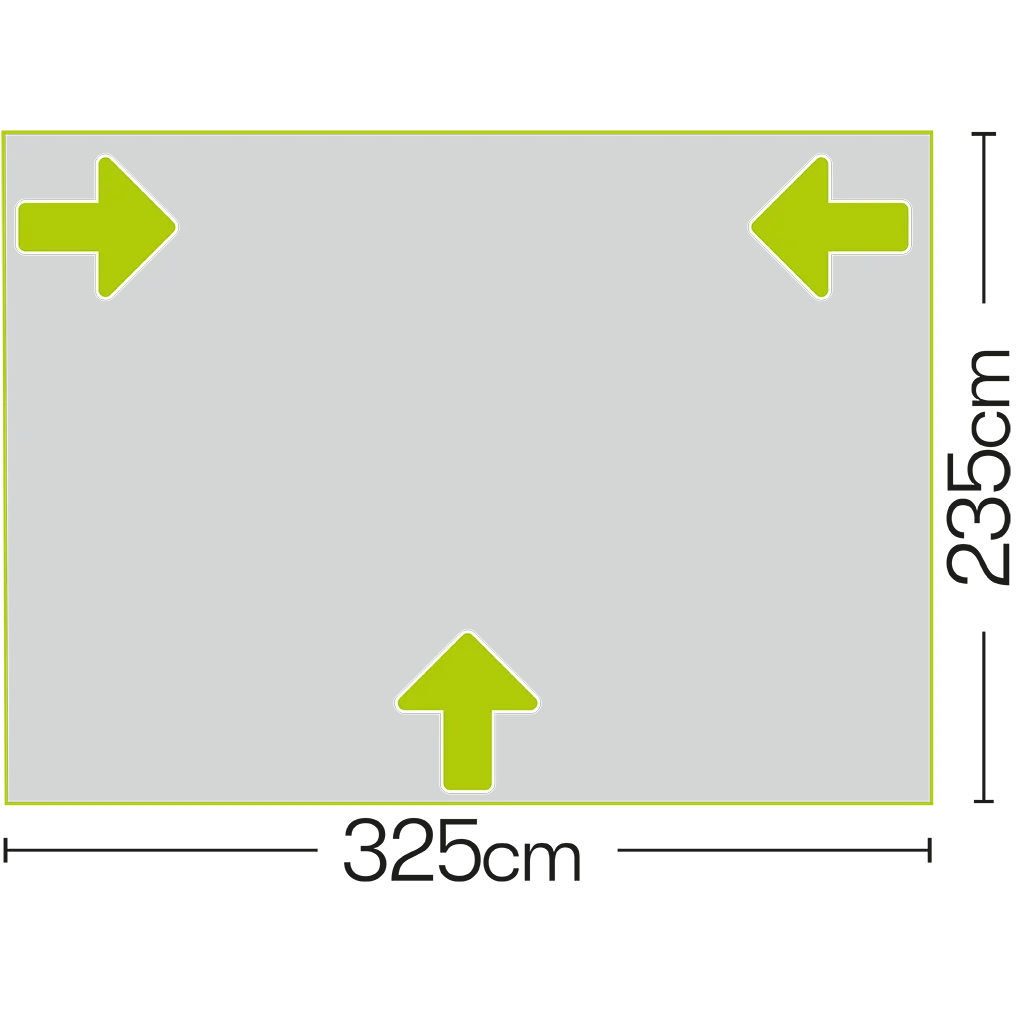 This awning has the minimal quick-fit frame system. This means it uses the minimal amount of poles making it smaller and easier to use. The frame is also adjustable. This is extremely useful when you pitch on uneven ground. Thanks to its adjustable nature it can be extended or shrunk to cater for uneven ground, slopes or obstacles which you can find on a large number of pitches, helping you to pitch correctly at all times.