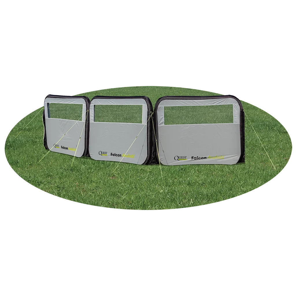 This is the all new Falcon AirShield. It is a modular air windbreak. Modular as every panel zips together, even when you purchase the 3 panel main unit it still comes as three separate panels that you can zip together, allowing you to use as many (even as few as 1) as you actually want.