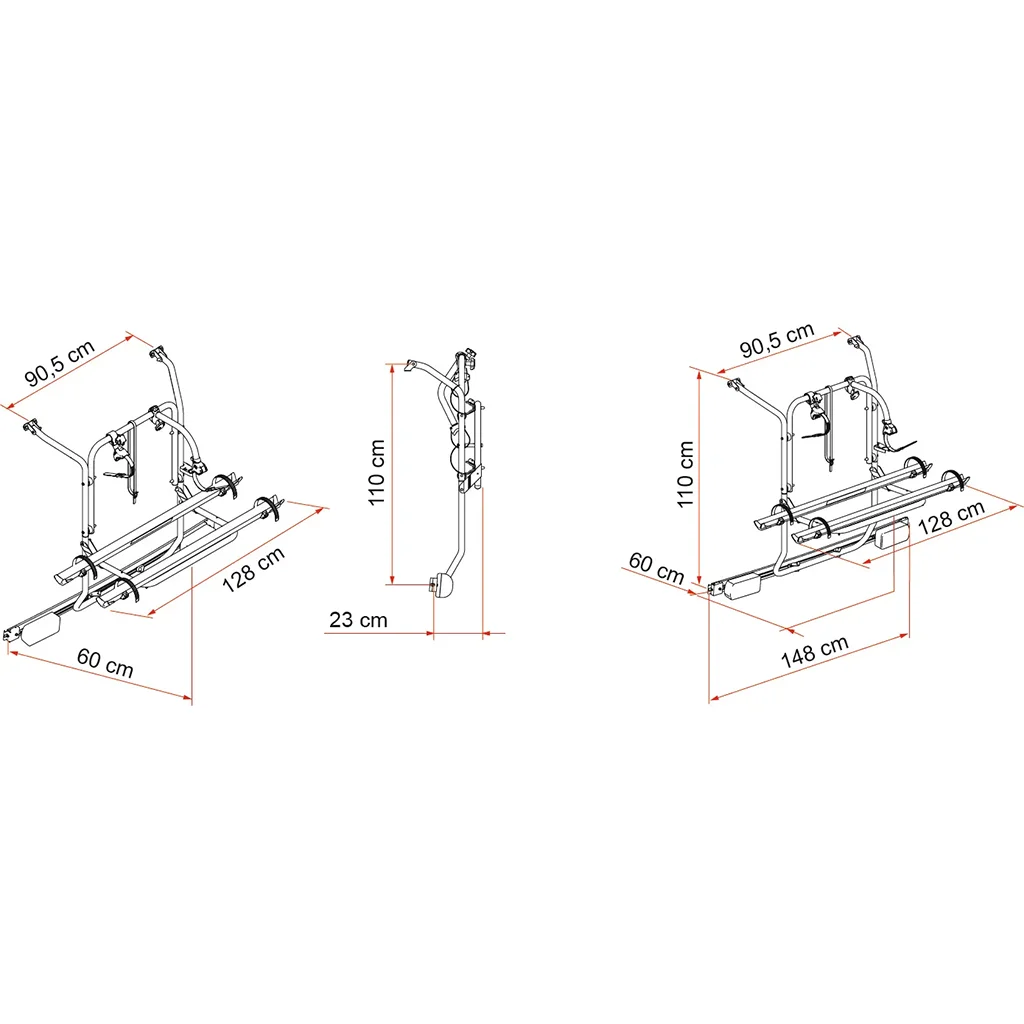 - Aluminium, for transporting 2 or 3 bikes