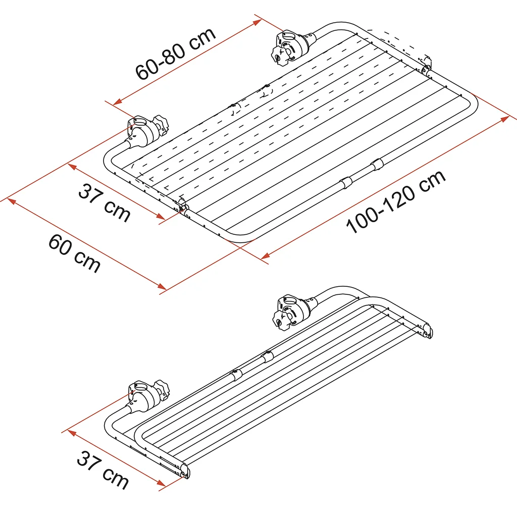 - The foldable structure makes it possible to travel with the drying rack mounted.