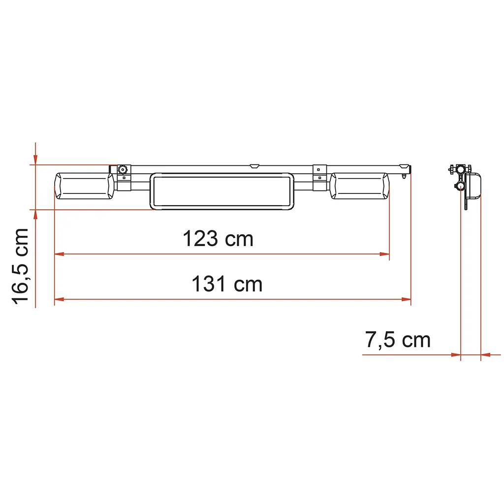 The licence plate carrier bar is made of aluminium, and has been painted black to match Fiamma’s black bike racks. It is equipped with Regulation lights and a 13-pole socket for easy electrical connection to the vehicle