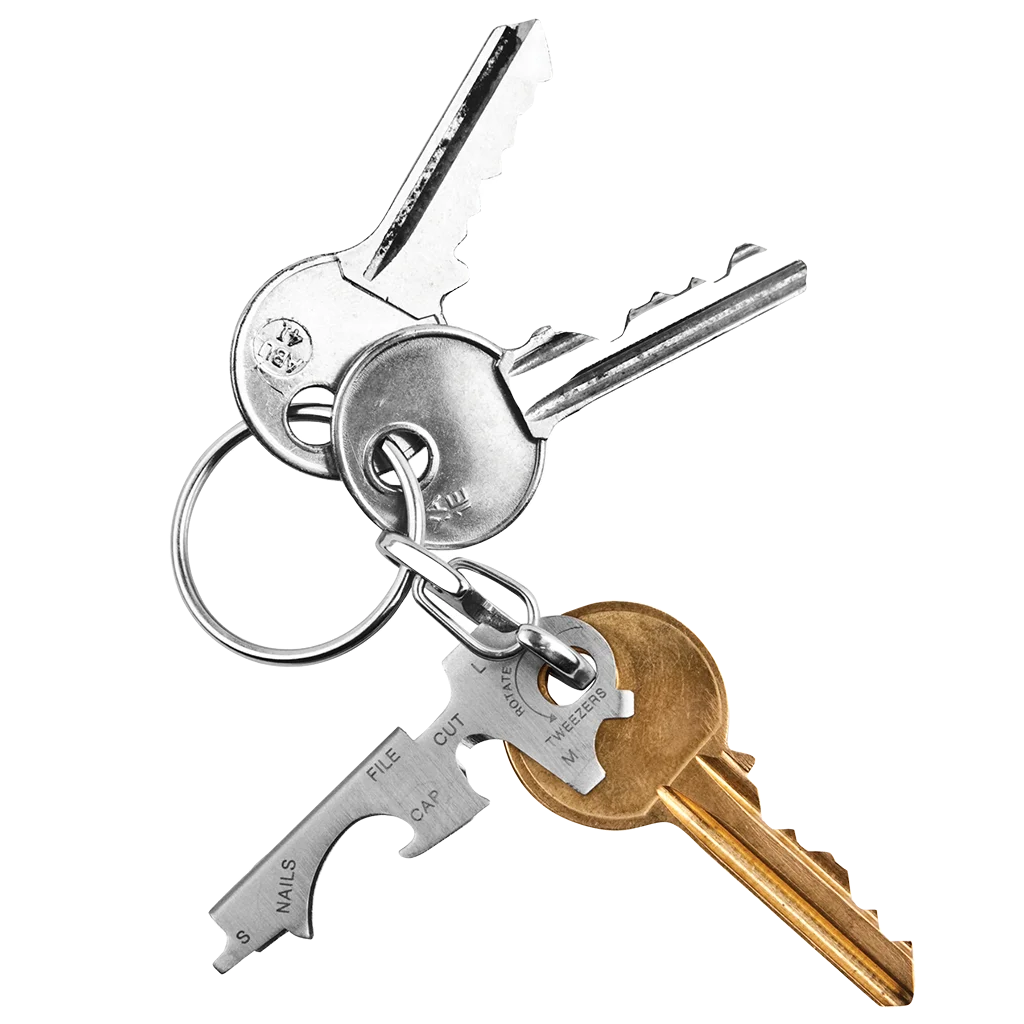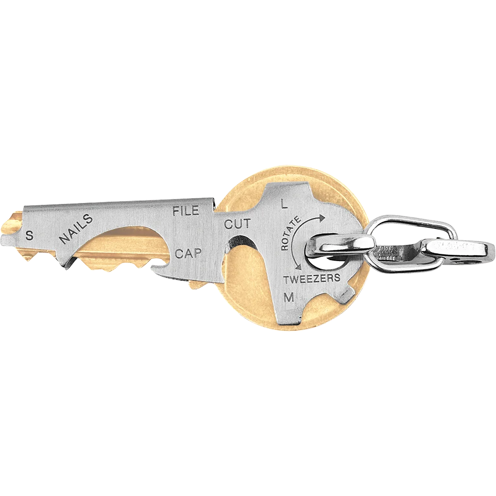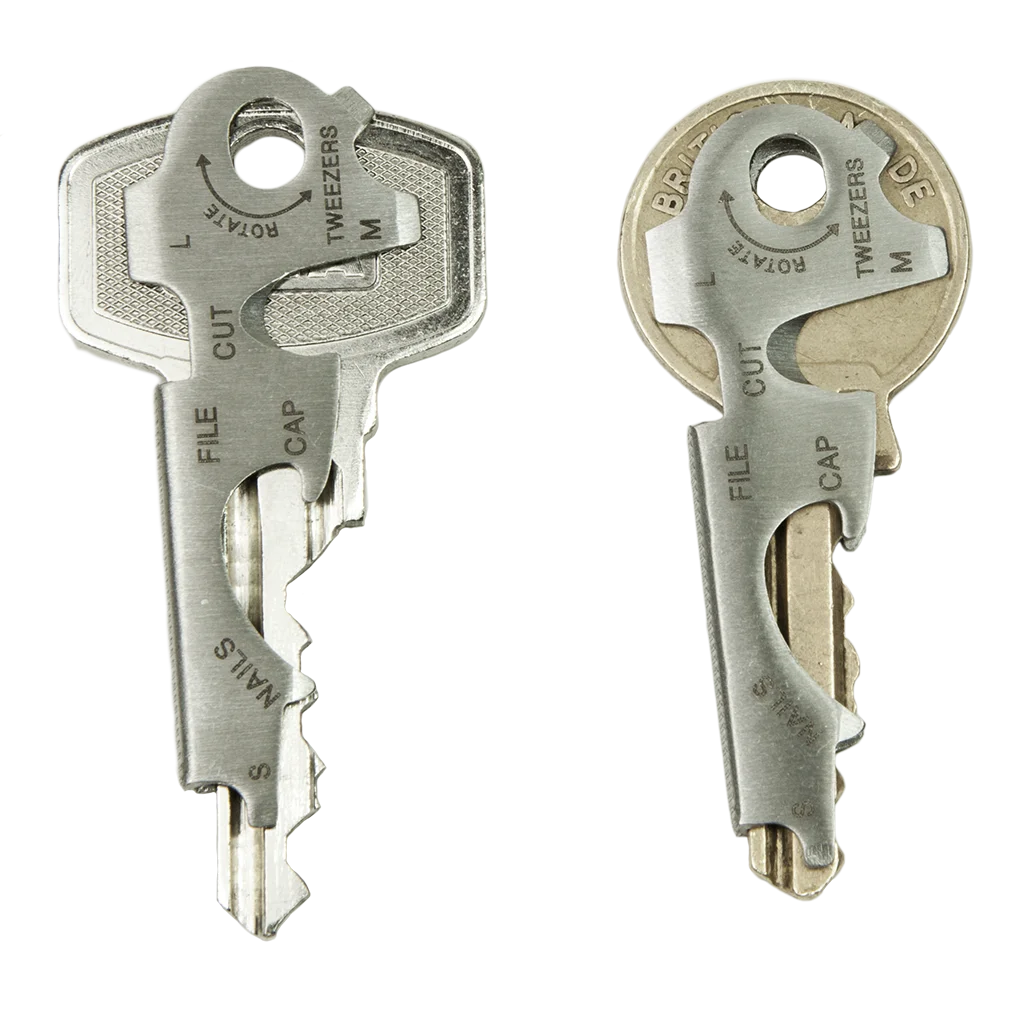 The True Utility KeyTool is a patented, ultra slim stainless steel multi tool designed to wrap neatly around a standard door key. Discreet and lightweight, it adds no bulk to a keyring while providing a selection of essential everyday tools for quick fixes and practical tasks. Its innovative design allows fast removal from the key when required, making it a convenient solution for daily carry.