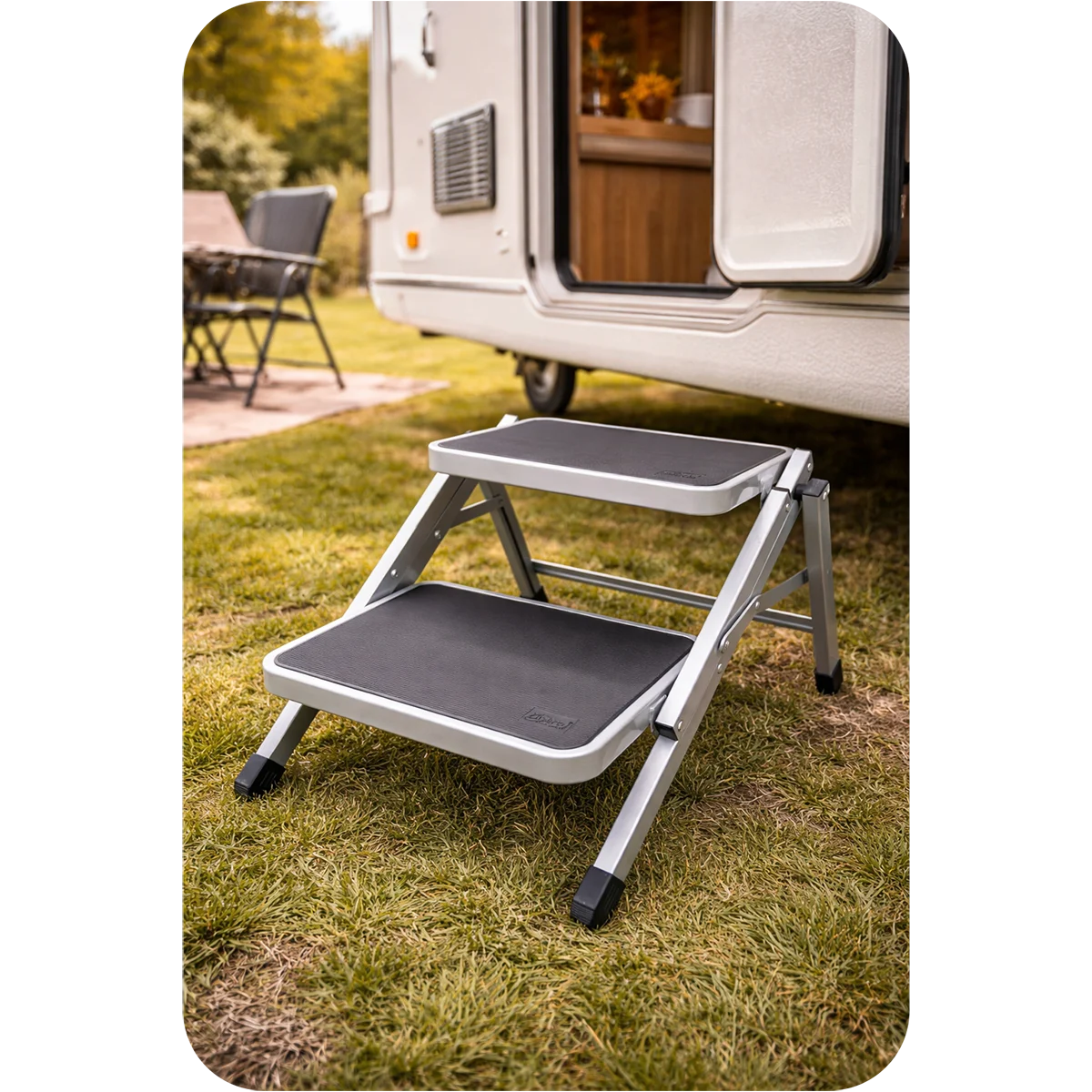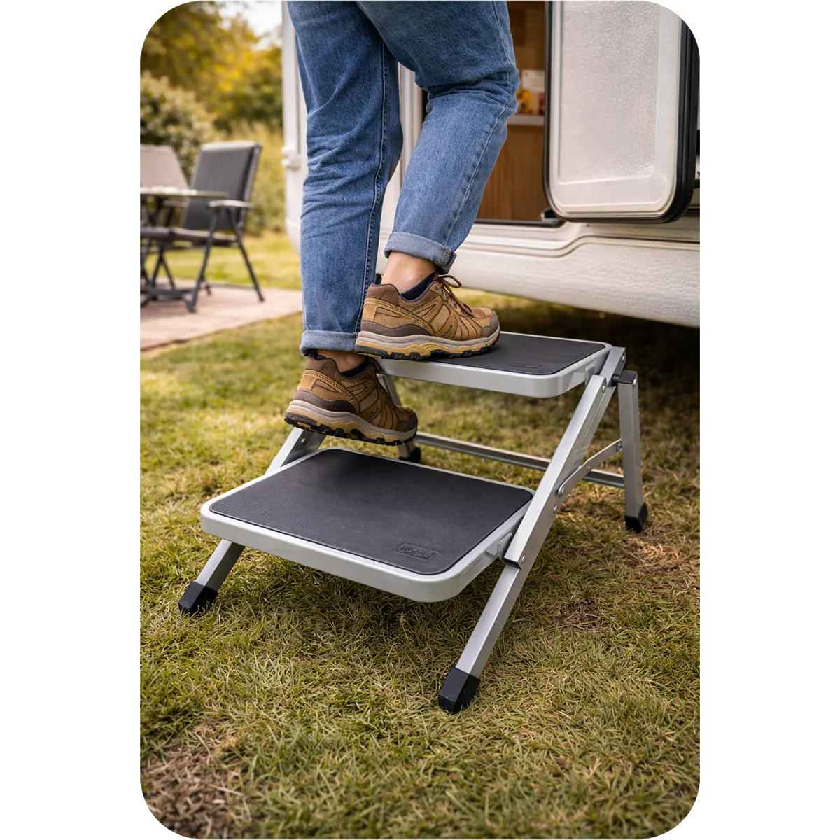 - Double Step Design Provides extra height and easier access for caravans, motorhomes, and camping setups.