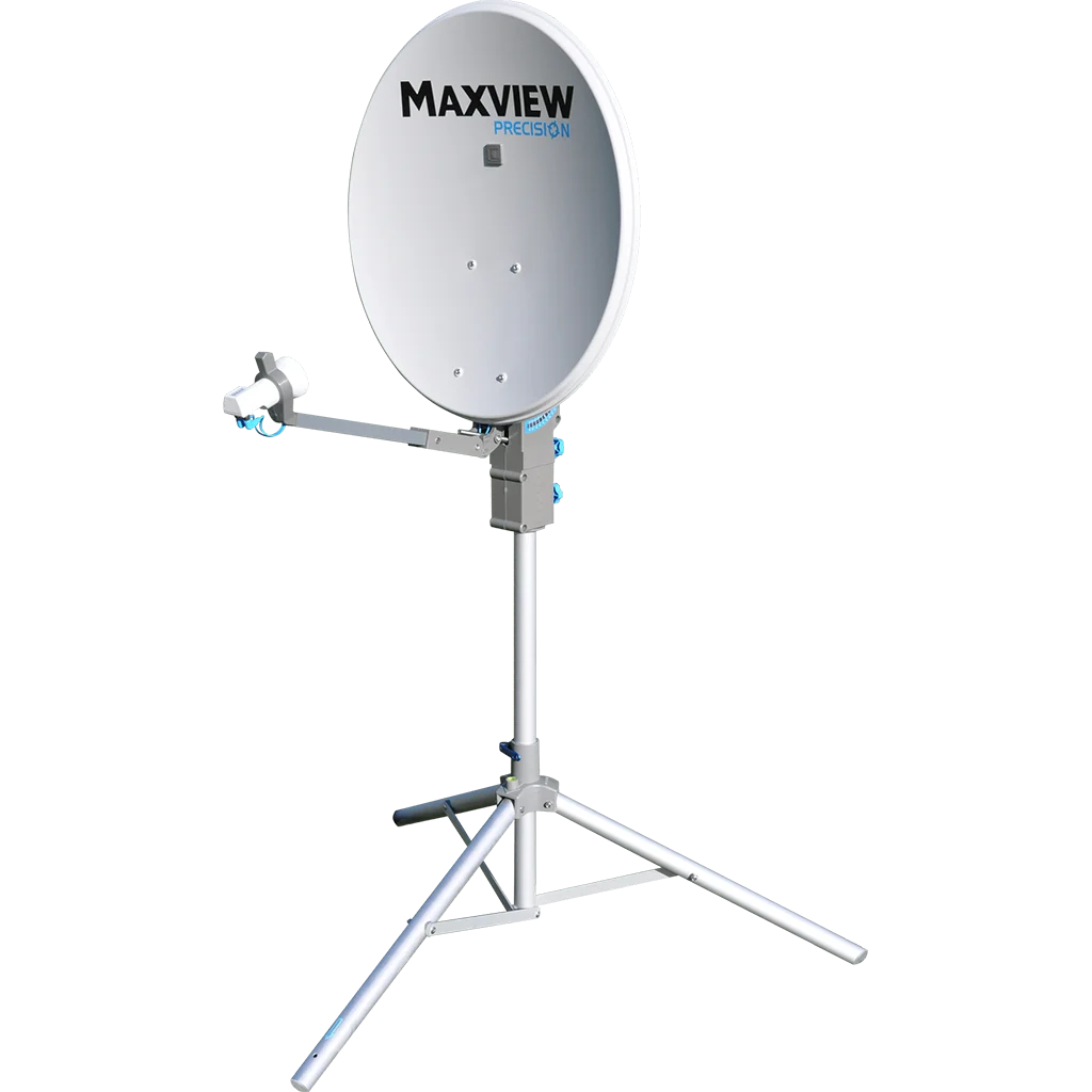 The Maxview Precision is a high-performance portable satellite dish system, designed for caravans, motorhomes, and camping. It provides reliable reception for Freesat, Free to Air, Sky+, Sky HD, and Sky Q channels (Sky Q LNB required). Compact, lightweight, and easy to set up, the system includes two storage bags for safe transport and convenient storage. The taller tripod design improves obstacle clearance, while the integrated satellite finder, elevation indicator, and magnetic LNB lock make alignment and operation simple. Designed and manufactured in the UK, the Precision delivers robust, high-quality satellite performance wherever travel takes it.