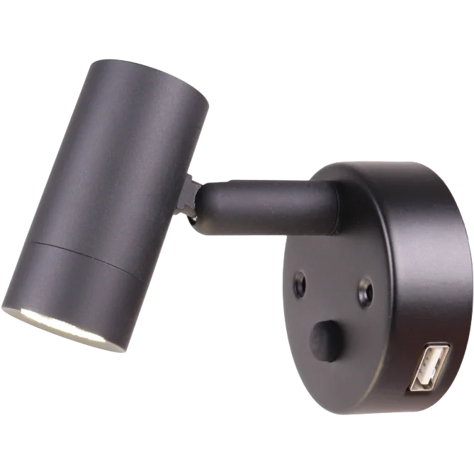 Compact and stylish 12V LED spot/reading light with integrated USB charging socket, ideal for motorhomes, campervans, caravans, boats, and van conversions. Featuring a satin black metal body with a 28mm adjustable head, this light combines functionality and modern design.