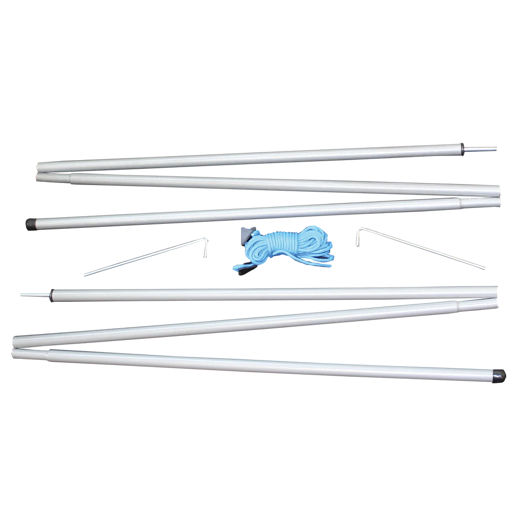 A quality steel canopy pole kit. The kit consists of two strong and light steel canopy poles, two guy lines and two pegs. Enables you to use your awning or tents panel as a canopy. The guy lines have the easy to quick lock feature on them making them easy to use than standard guy lines.