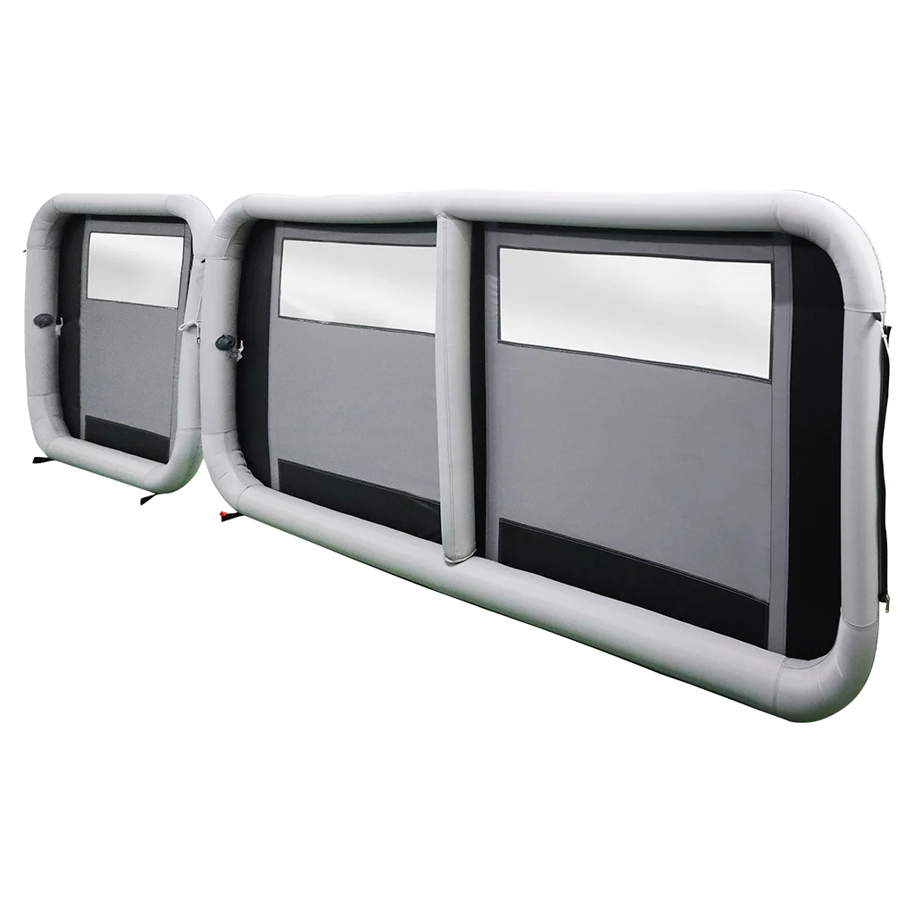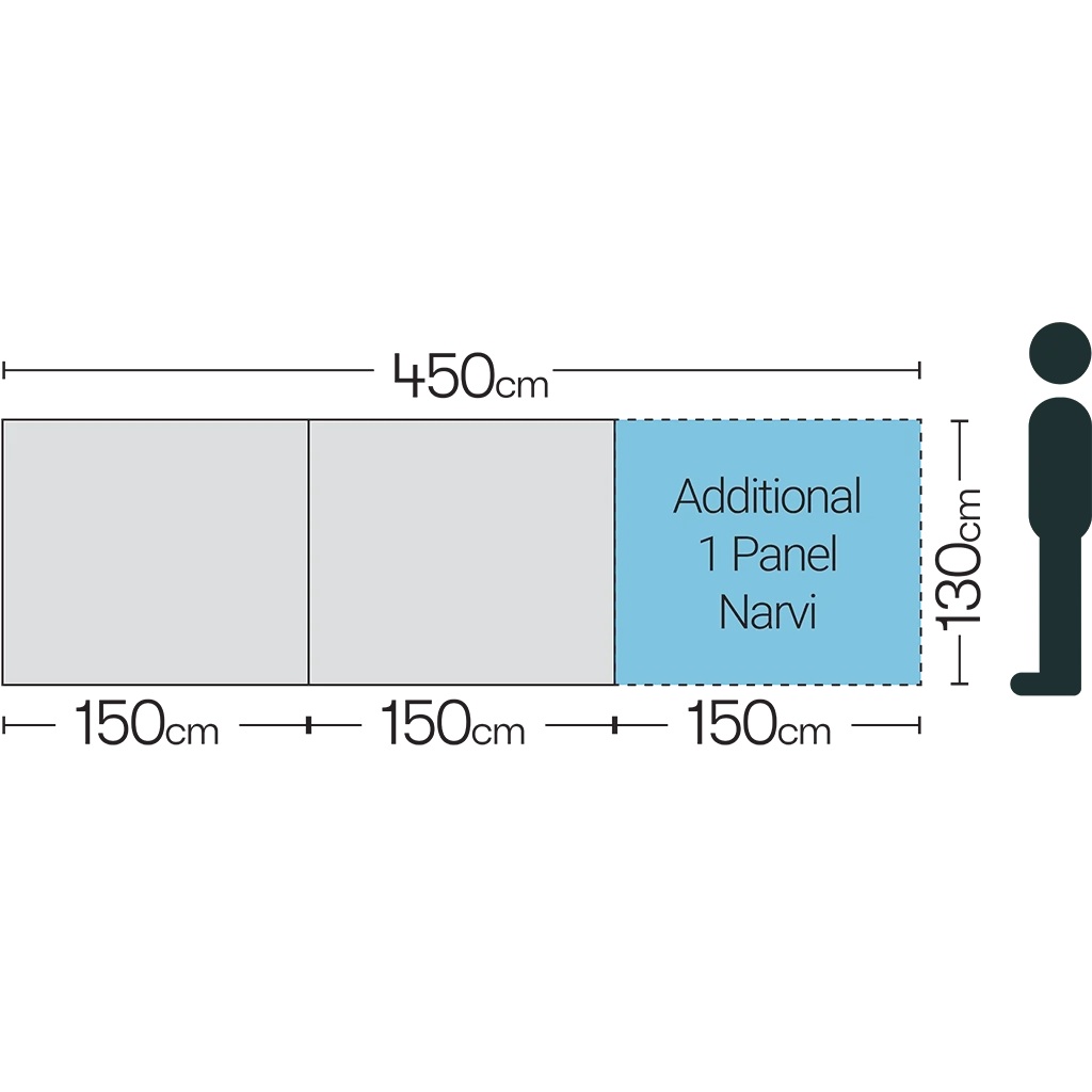 The Narvi is extendable as you can zip as many Narvi’s together allowing you to extend it to any length.They simply zip together in seconds and allow you to form corners at each zipped section. This two panel model includes a pump.