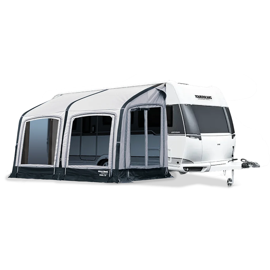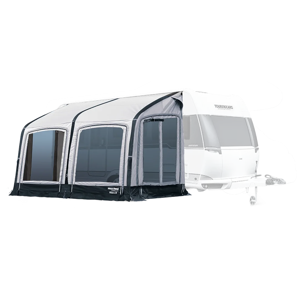 The Vega 2 is a luxury modern porch air awning which is made to fit all standard caravans and other vehicles between 235 and 260cm high It features the luxury HydroTech Cotton Touch fabric plus the advanced air system to create a luxurious, easy to use air awning. Perfect for touring at any time of the year, this is an any season porch awning that will last for years and years.