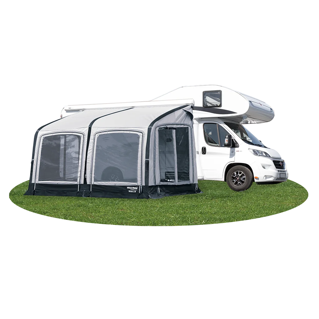 The Vega 2 high is a luxury modern porch air awning which is made to fit higher vehicles like motor homes plus any vehicle between 260 and 285 cm high.. It features the luxury HydroTech Cotton Touch fabric plus the advanced air system to create a luxurious, easy to use air awning. Perfect for touring at any time of the year, this is an any season porch awning that will last for years and years.